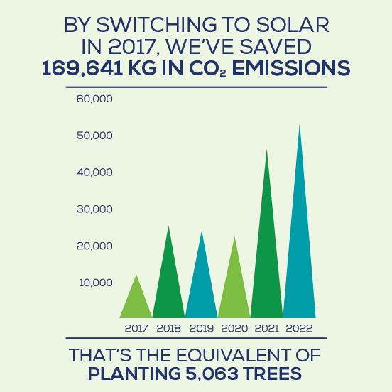 - Harnessing Solar Power: We’ve installed state-of-the-art solar systems in both of our production facilities, reducing our carbon emissions by nearly 170,000 kg.